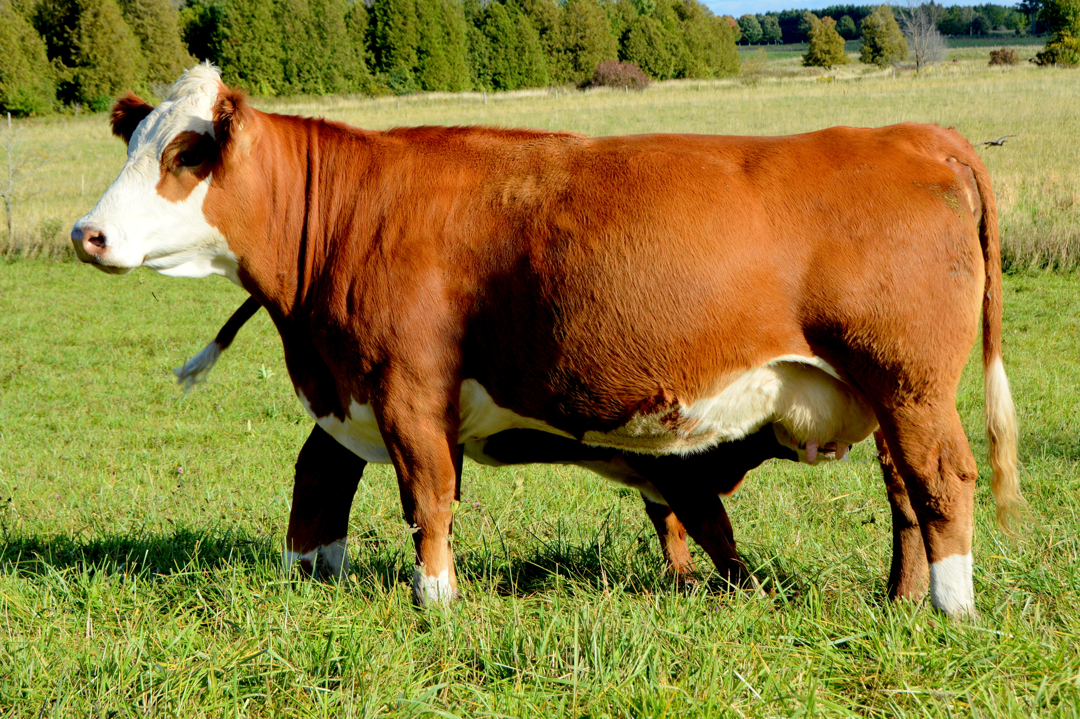 Adeline’s 2014 model in our heifer pasture this summer was sired by our Platinum bull and is bred San Mar Pharao for a January 2016 calf. April 66B will be offered for sale this fall.