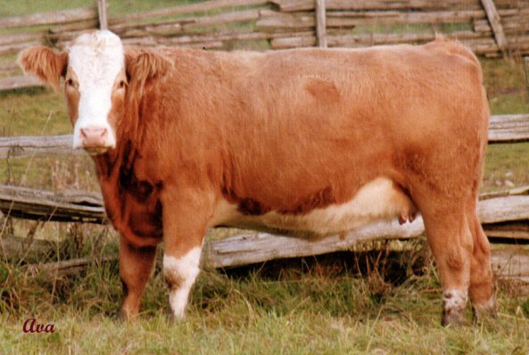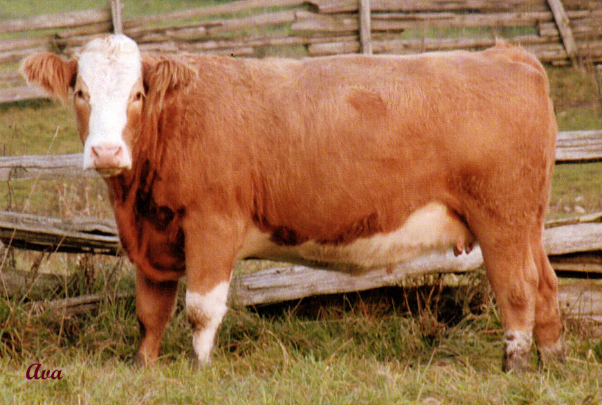 Ava is a direct daughter of our Anna cow we imported from the US back in 1998. Anna was a Three R’s Octave daughter who calved out evey year during her 14 years here, producing excellent females that stayed in our herd. Ava’s sire was Three Sixes, an impressive young bull we saw on display while attending a Buzzard Hollow sale. He had a quiet temperament, low birth weight and great general all round appearance. We believe the mating was a good one and Ava is just getting started here at Dora Lee with a daughter working at Elm Tree Farms and her 2011 son working for Frazer Diehl.
