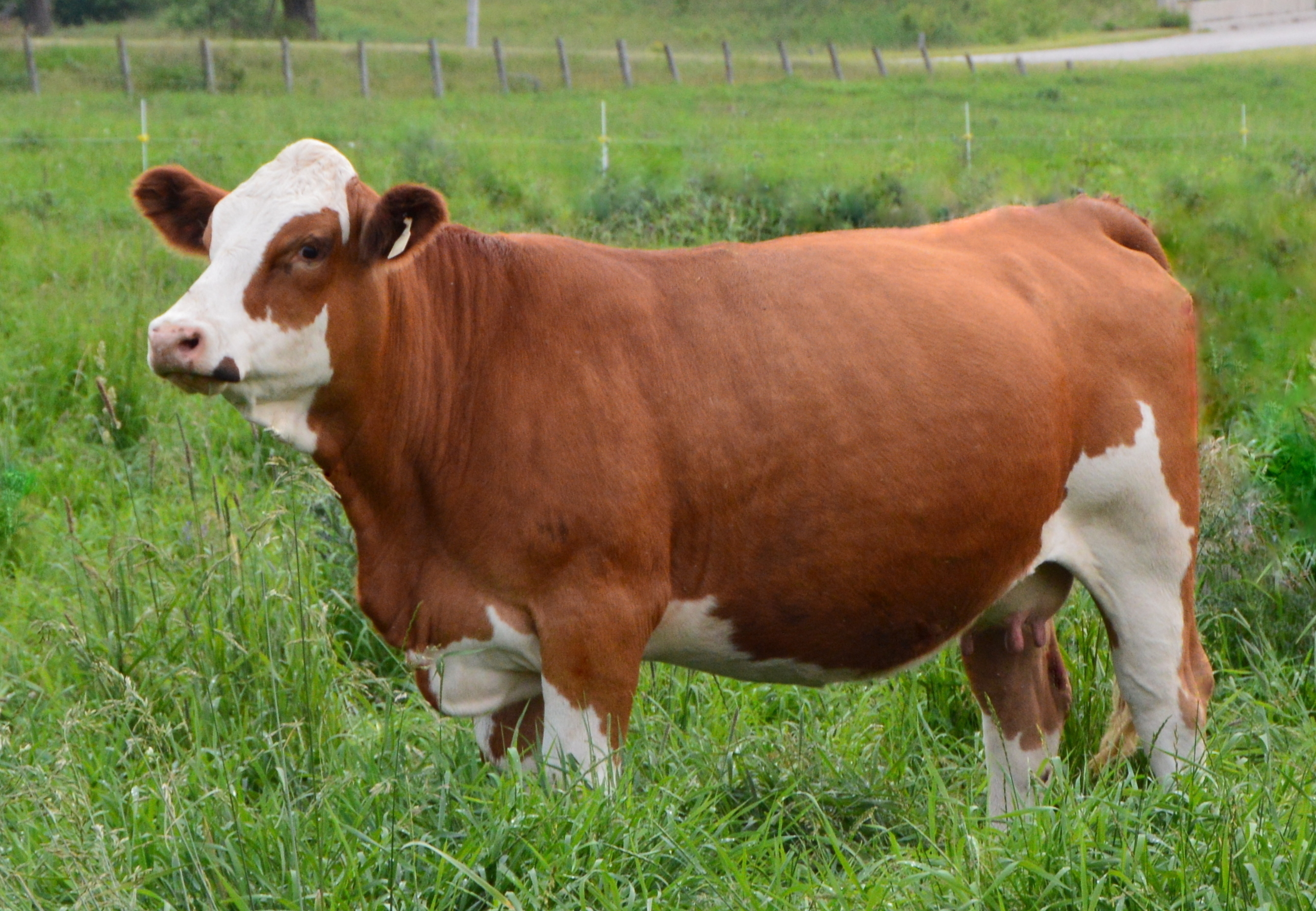 Janine is sired by the 1992 legendary Myers Canadian Siegfried bull and we believe this is his only polled daughter. Janine’s first calf by Hugo is a brockel-faced, homozygous polled heifer calf. Janine is safe in calf to the Viper bull for an early January 2014 calf. Janine has an impressive RFI genomic score placing her in the top 5% for feed efficiency. Janine has her whole life ahead of her and we feel a tremendous future here at Dora Lee.