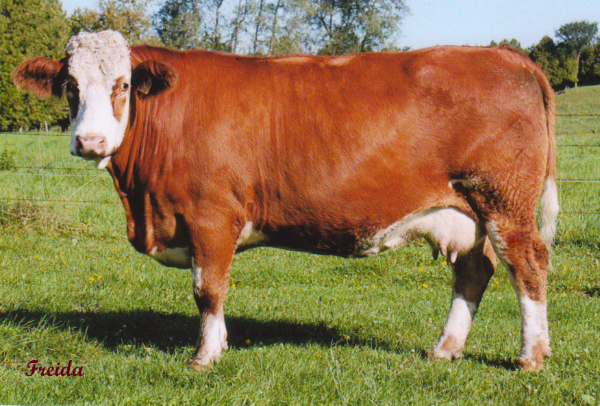 We purchased Frieda at our 2005 Forum sale realizing that her granddam was none other than MFL Freya. Many long time Fleckvieh breeders have told us over the years Freya was one of the best fullblood cows to ever set foot here in North America.