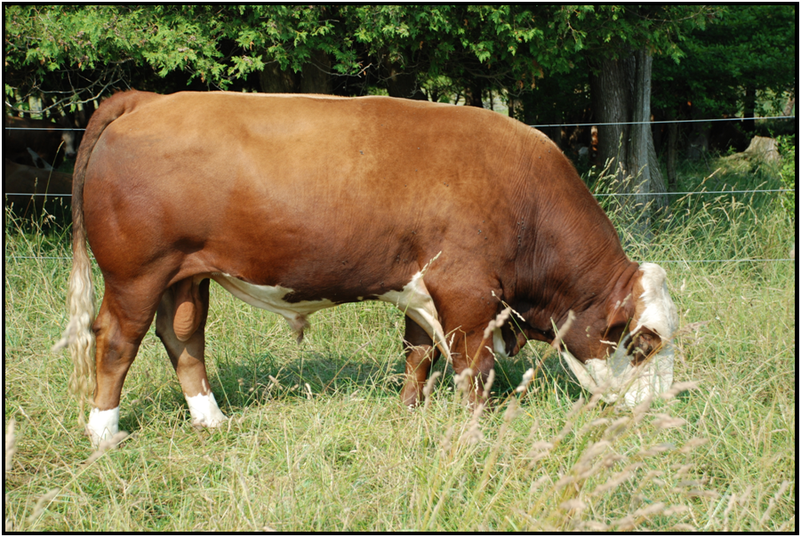 2011 saw us continuing to enjoy our passion for our Fleckvieh cattle. Calving started early, or should I say, late December starting out with twin bulls by Equinox X our Caroline cow, followed by the 3 cows we had bred Broadway presenting us with twin bulls, twin heifers and an impressive heifer calf, all polled. Our Farah, not to be out done, gave us twin heifers in late March. Eclipse and Equinox calves continued to be impressive as well. All in all, calving went very well with a 108% calf crop and a great group of exceptional heifer calves and several promising herd sire bulls.